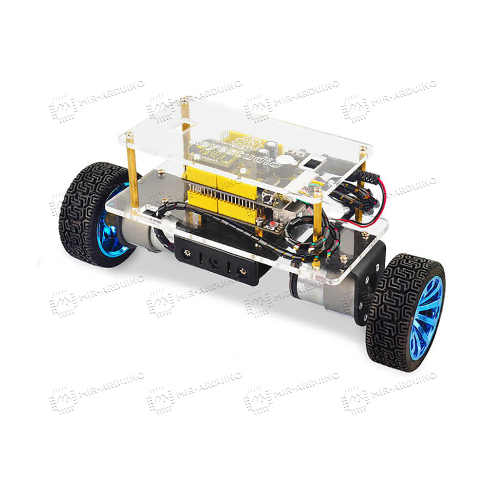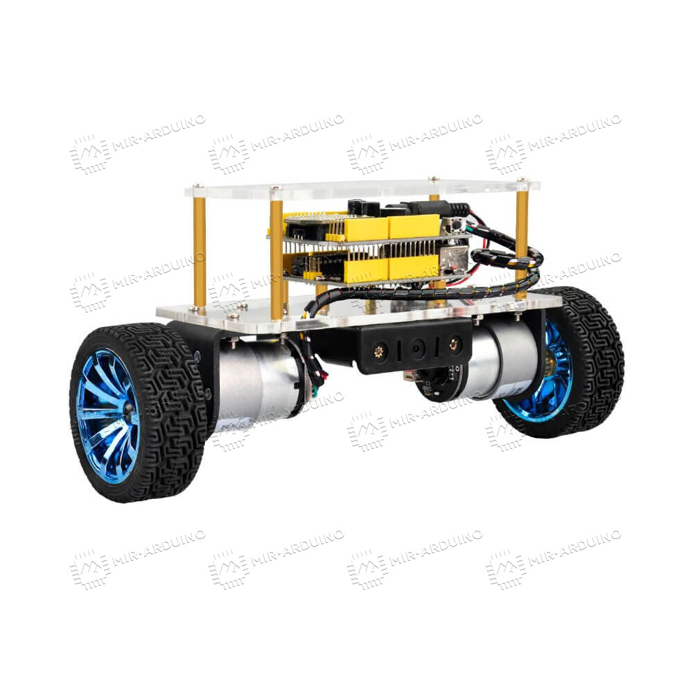 Набор для моделирования Ардуино (Arduino) Balance Car – умный конструктор, позволяющий спроектировать балансирующий автомобиль. Обучающий набор включает в себя датчики, платы, модули, провода, которые нужны для сборки робота. Двухколесная машина поддерживает удаленное управление с телефона, синхронизация осуществляется по Bluetooth модулю. Машинка может самостоятельно передвигаться по разным линиям, обходить препятствия. Есть возможность расширить функционал робота с помощью установки дополнительных датчиков.
